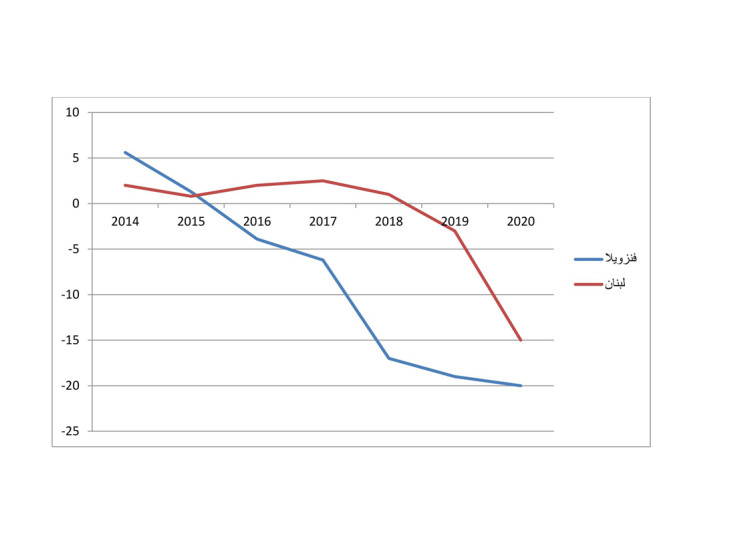 رسم مقارنة للناتج بين لبنان وفنزويلا